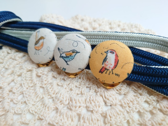 色んな種類のとりさんを切り取った帯留めです。 実はまだまだたくさんのとりさんがいるのですが。。。 お気に入りの子はいましたか? 複数並べてコーディネートするのもオススメです! お揃い生地の半衿やアクセサリーもございますので、ぜひセットで揃えてお楽しみくださいね☆ また、スカーフクリップとしてお使いいただけるのも嬉しいポイント♪ 和でも洋でも、さまざまなシーンで活躍しますね! ・・・クリップについて・・・ しっかりとした作りのクリップですので、太めの帯締めにも対応!「パチン」としっかり留まります^^帯締めを締めた後に付けることができるので、こちらを一度使うと他の帯留めには戻れないかもしれません…!心配な方はリングに帯締めを通してご使用いただけます。