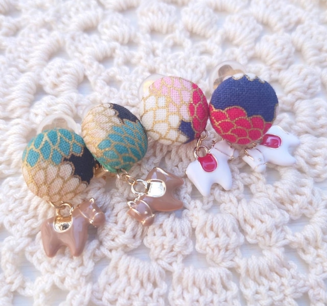 来年の干支・うまモチーフのピアスとイヤリング。 菊柄のくるみボタンが、耳元を華やかにしてくれます。 小さな馬のチャームは表も裏もそれぞれのかわいさ。 左右で向かい合わせになるようにしているので ちょっぴり違う表情もお楽しみいただけます。 片方はしっぽやたてがみが見えたり…♪ 裏までぜひ楽しんでくださいね! ※※「くるみときもの」のこだわり※※ 裏までかわいく見えるように、くるみボタンの背面を同じ生地でふさぎ、刺繍糸で縁取っています。 詳細 ・くるみボタン15mm ・ピアス: サージカルステンレス ・イヤリング: サージカルステンレス(イヤリングカバー付き) ※茶うまさんイヤリングSoldoutです。ご希望の方はお気軽にご連絡下さいね!2025.11.22 ※白うまさん・ピアス、茶うまさん・ピアスイヤリング追加しました。2025.11.20 ※ハンドメイド品ですので、水濡れや強い衝撃にご注意ください。
