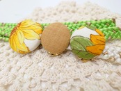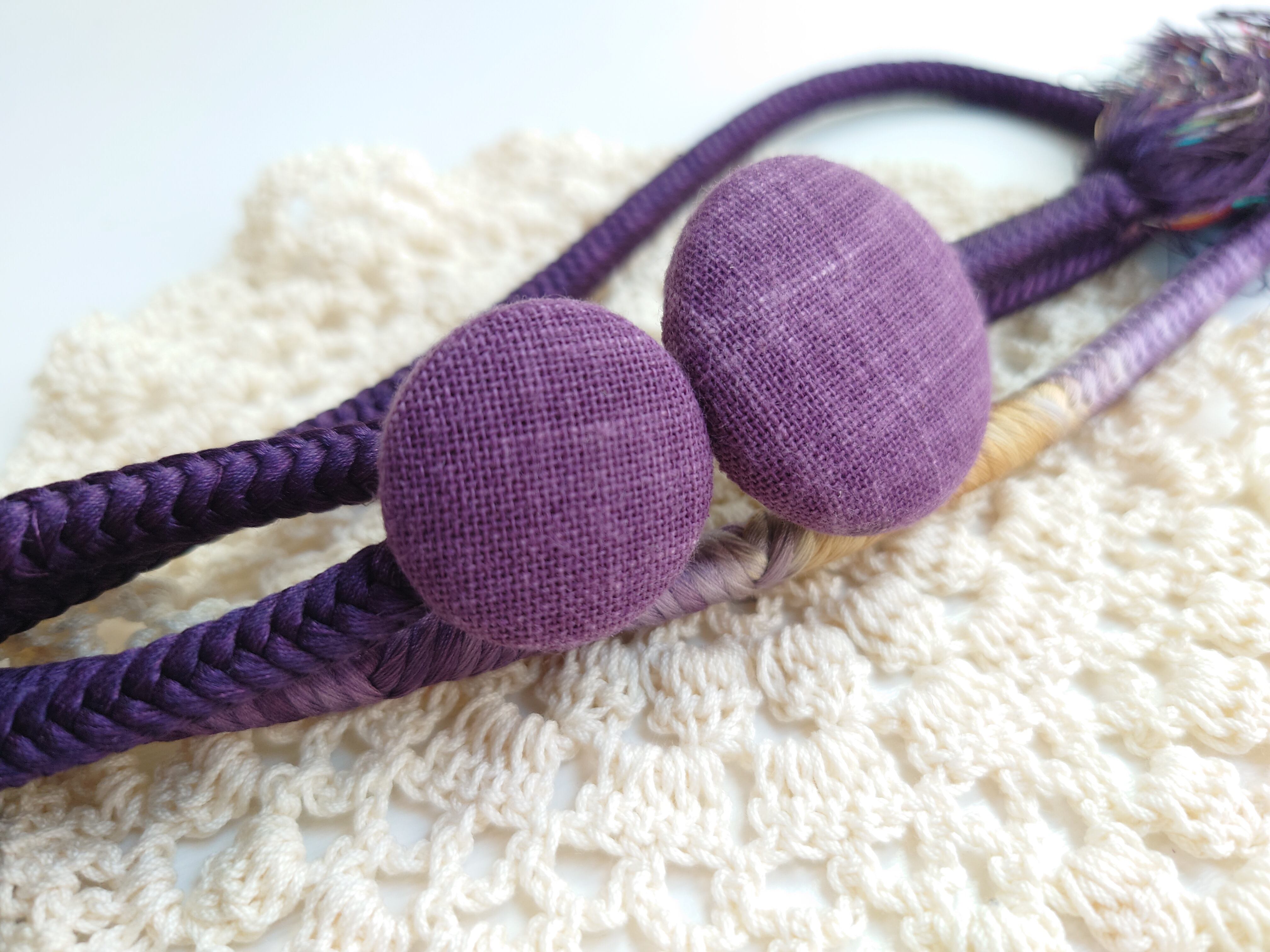 手捺染の黄色と紫の生地で帯留めを作りました☆