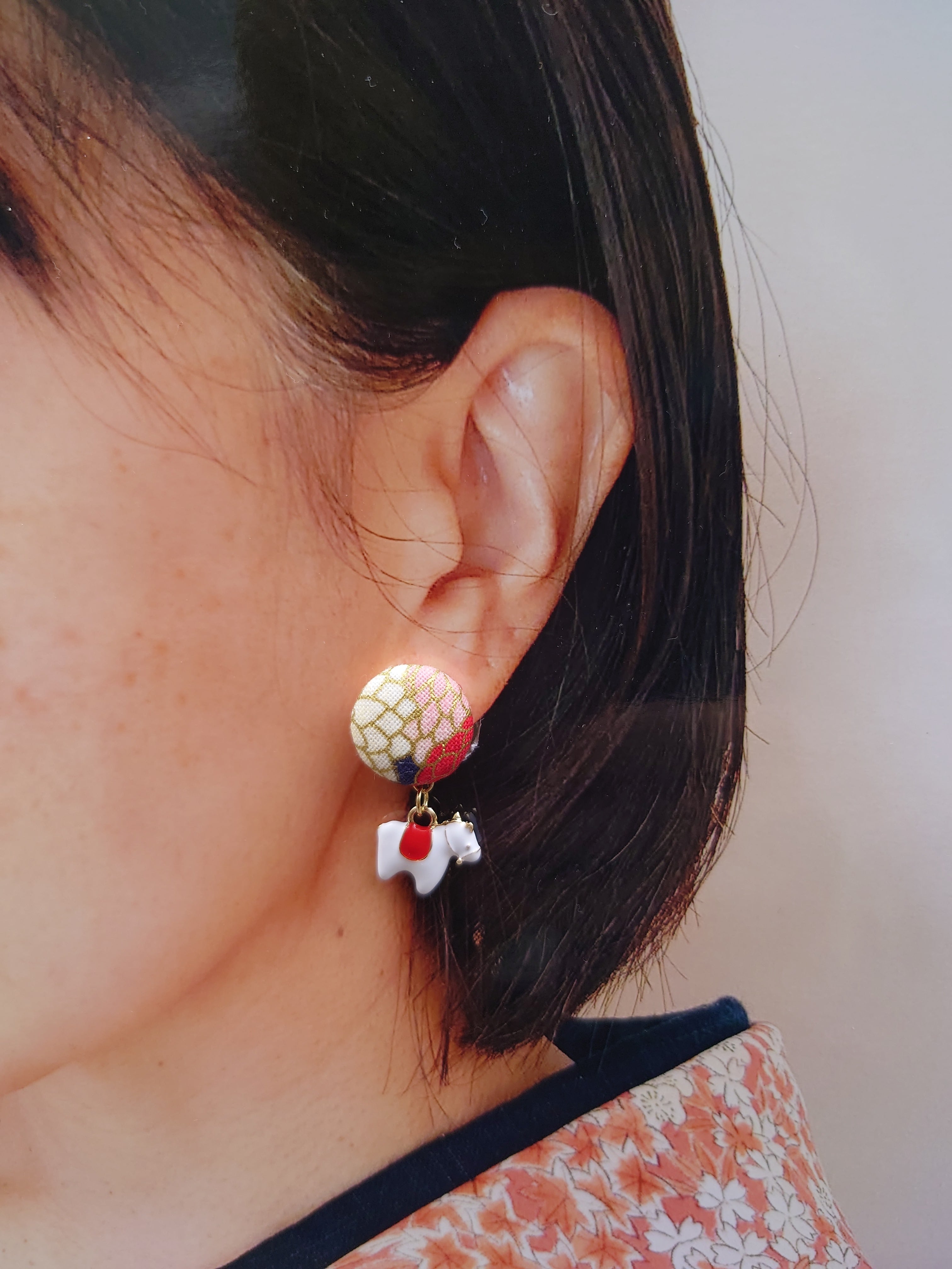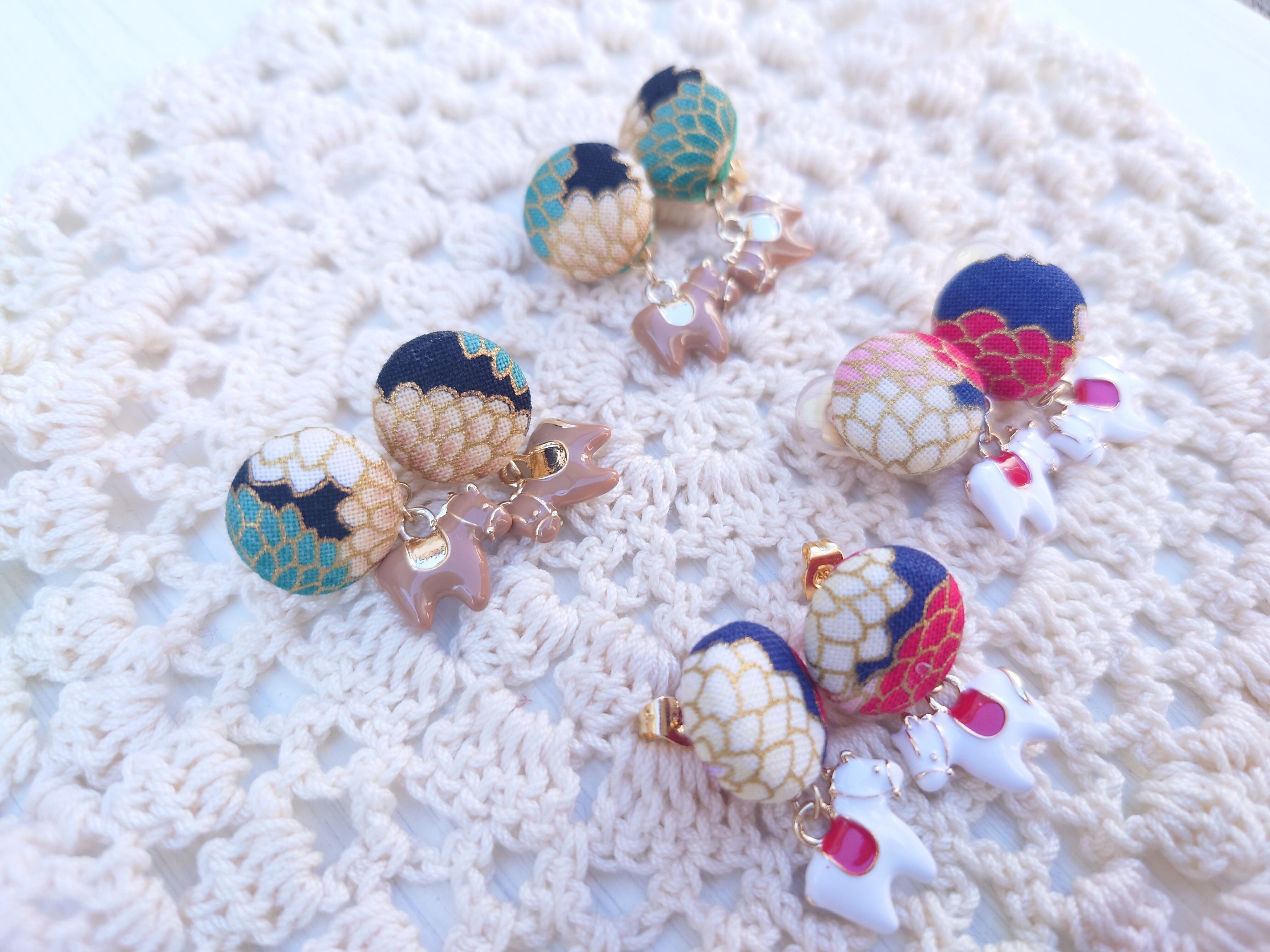 菊柄のくるみボタンが、耳元を華やかにしてくれます。