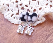 小さな招き猫チャームを合わせた、大人かわいいアクセサリー。