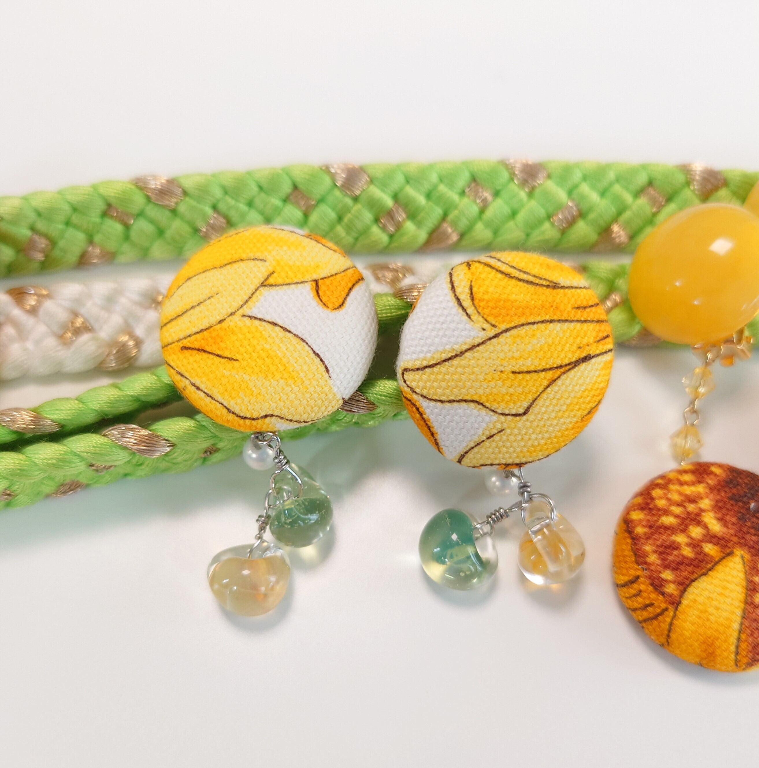 ・ドロップビーズ(黄色、黄緑色)
