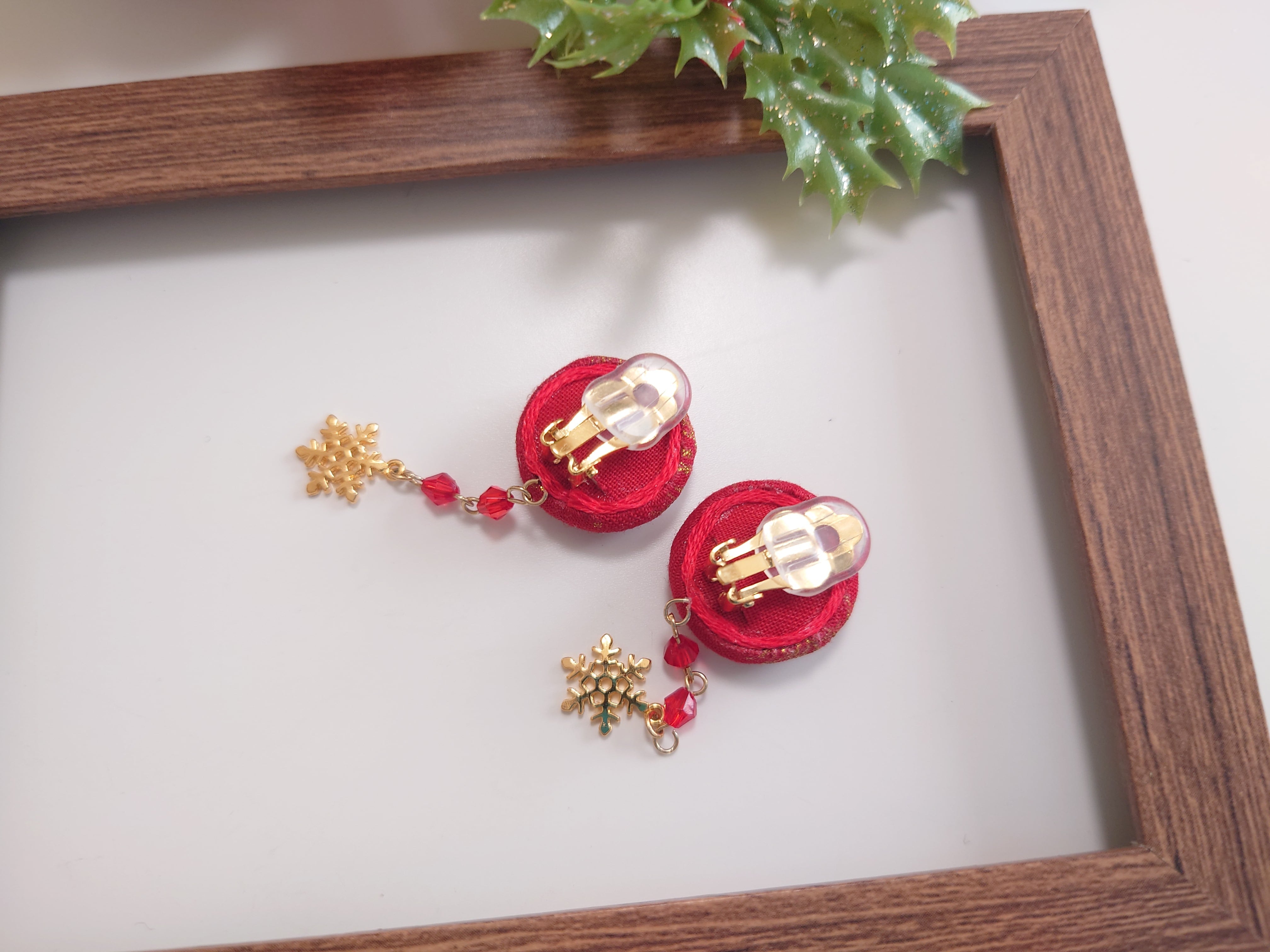 雪の結晶のチャームがゆらゆら揺れるイヤリングです。