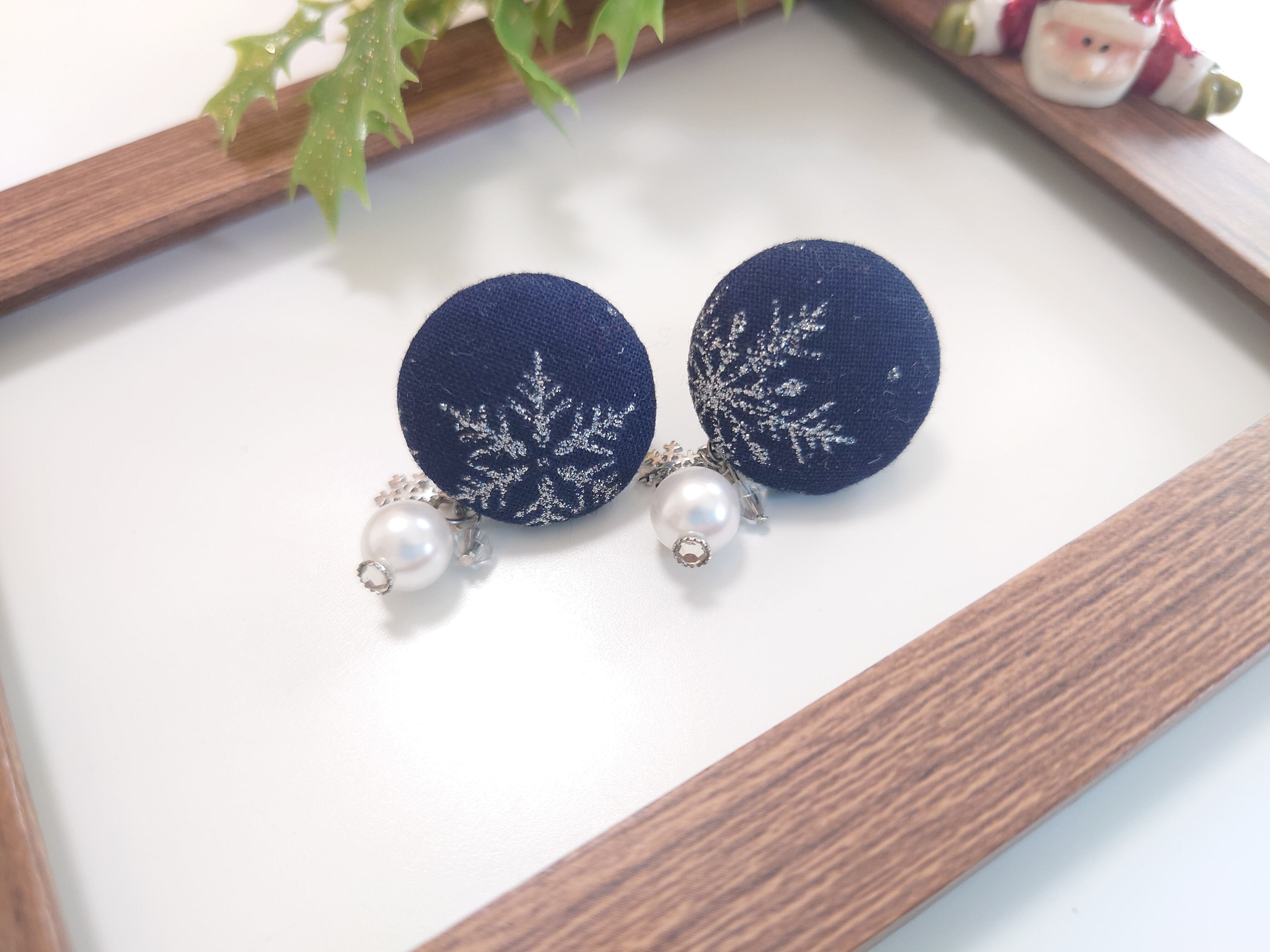 裏までかわいい♪ 22mmくるみぼたんピアス 【雪・結晶】(樹脂)