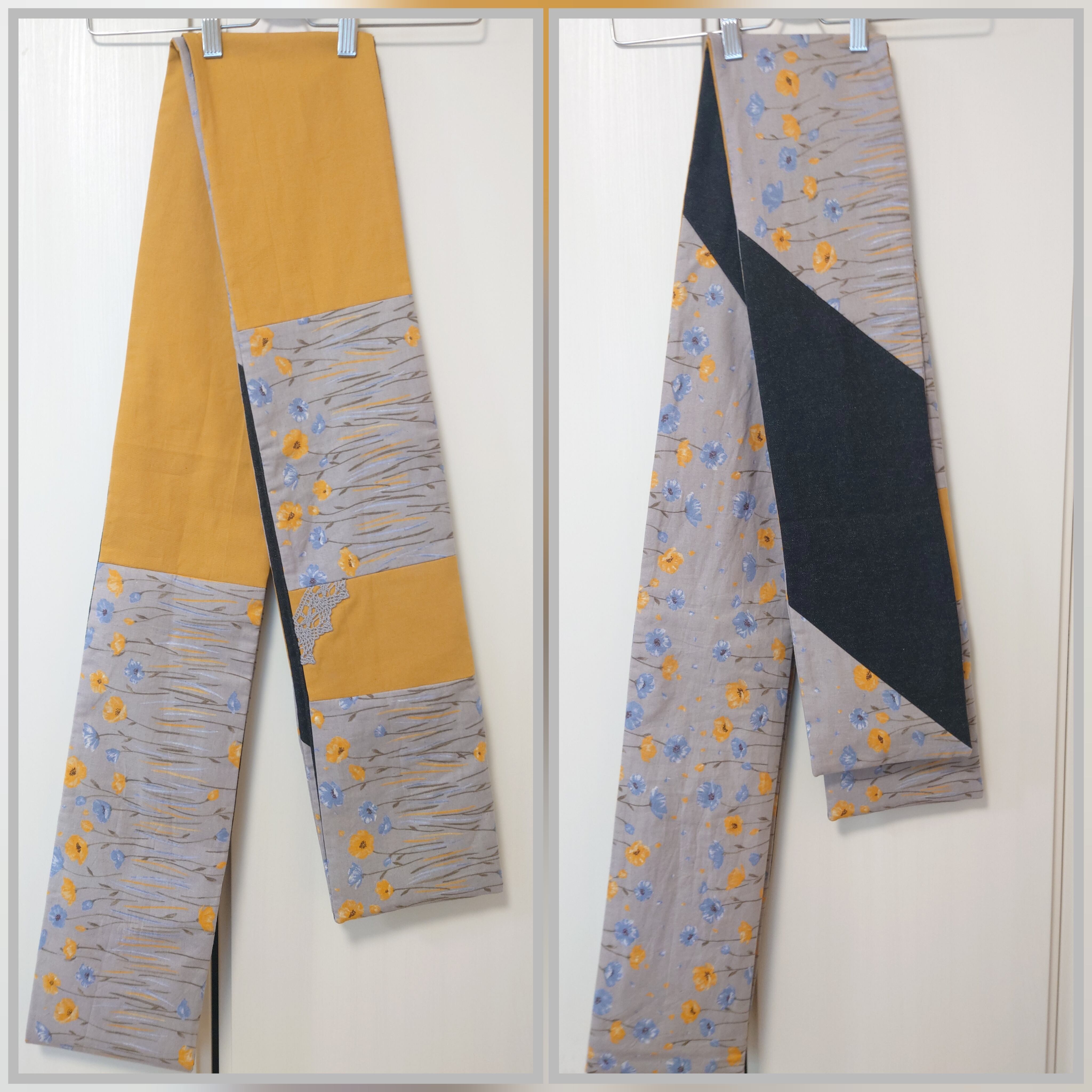 グレーの優しいひなげしの生地と発色のよいマスタードイエロー。そしてブラックデニム。優しい色合いとはっきりした色合いと両方楽しめる配色になりました♪