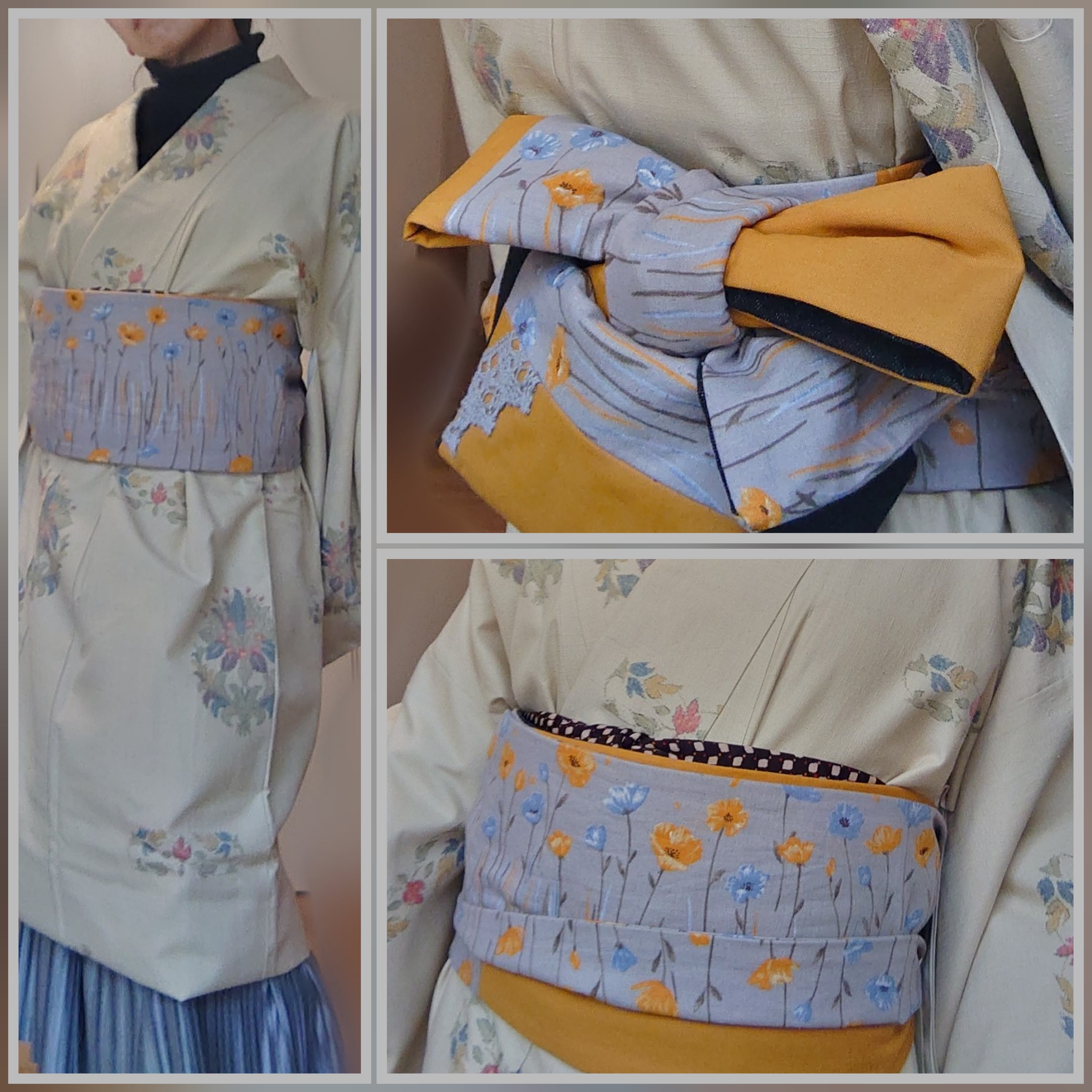 綿生地の帯は少し結びにくいかなぁ。。。と私は感じていますが、その結びにくさを軽減するため、芯地は一部の生地にのみ使っています!柔らかく、良い感じに仕上がったと思います☆☆