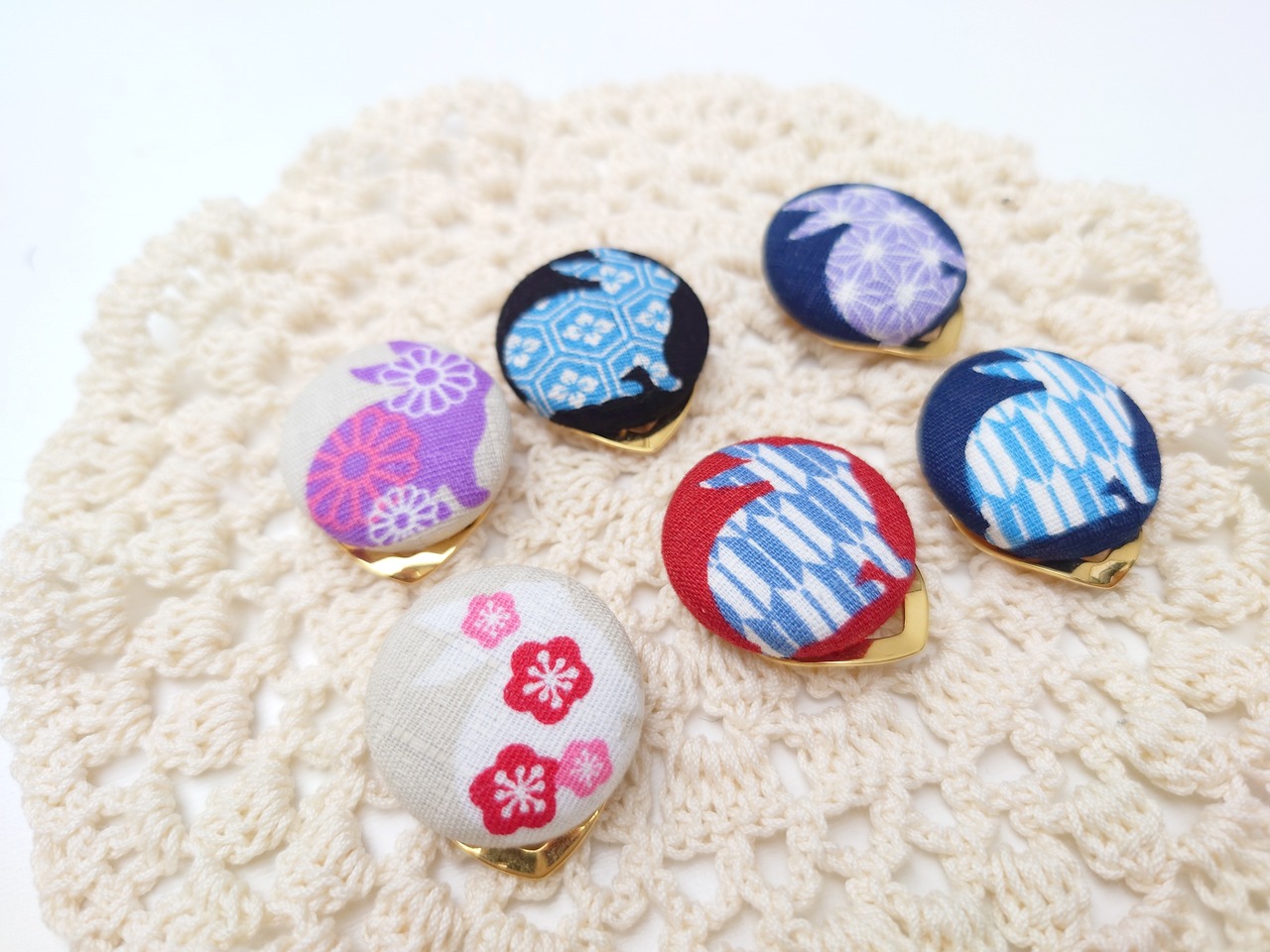 スカーフクリップのくるみボタン帯留め 小 【和柄とうさぎさん】